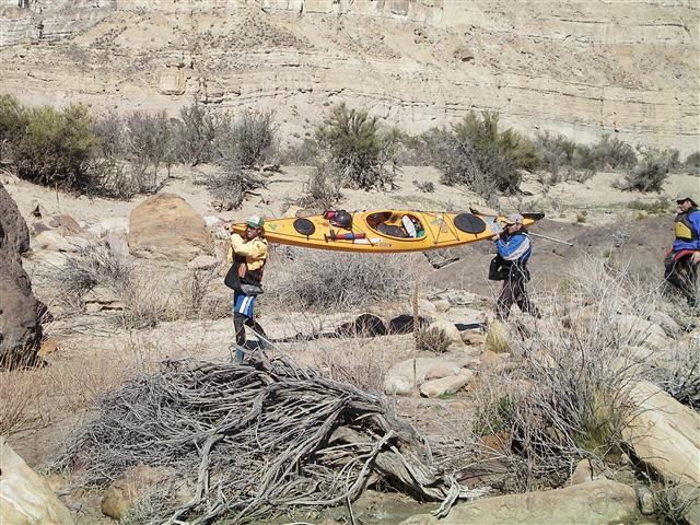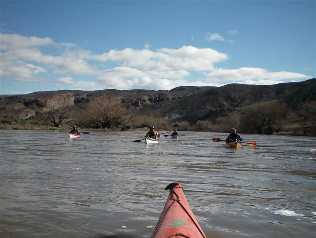 Hace rato veníamos con ganas de bajar el río Chubut, aunque sea en algún tramo, por fin se nos dio y organizamos la travesía para mediados de septiembre. La última semana estuvo lloviendo en grandes cantidades, si bien ya había parado para el día en que arrancamos, se veía que el río iba a estar muy crecido. El viernes al mediodía cargamos los botes, todo lo necesario y salimos de Bariloche por la ruta 40 hacia el sur. Al llegar al lago Guillelmo se había desbordado un arroyo sobre la ruta cortándola completamente, y tuvimos que esperar un rato para ver si nos dejaban pasar, pero por suerte nos dejaron seguir. Íbamos Nico, Lupe y Caco en una camioneta con el tráiler y los kayaks y Pipo y yo en la otra, para poder hacer la logística y poder regresar sin necesitar un chofer.