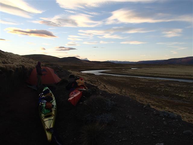 Luego de recorrer los lagos de está olvidada región de Santa Cruz, decidimos navegar el Río Roble y Chico desde su naciente en la cordillera de los Andes. Atravesar la Patagonia en kayak es una experiencia increíble, dejar la nieve y el bosque atrás para perderse en los mil meandros del Río chico en busca del Mar. La historia de la explotación lanera nos acompañó durante todo el viaje, ruedas de carretas, antiguas pasarelas y olvidados cascos de estancias. La navegación fue muy divertida con algunos rápidos al principio y fuertes vientos en la zona de estepa que incluso nos detuvieron en algunas ocasiones.