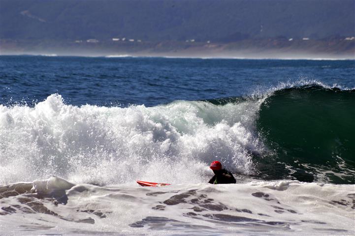 No es recomendable surfear con kayak cuando hay bañistas cerca, una vez arriba de la ola somos un misil peligroso para cualquiera.