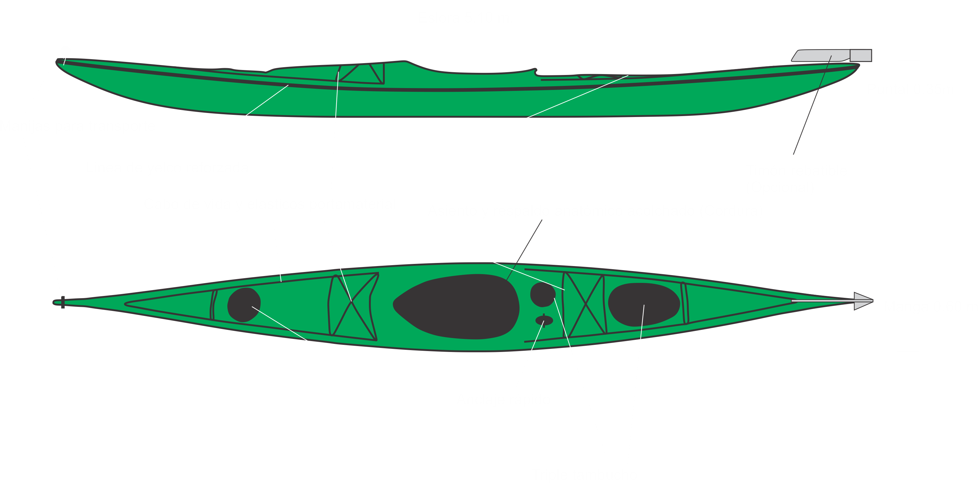 Un kayak apto para largas travesías como para paseos cortos, de gran maniobrabilidad y estabilidad.