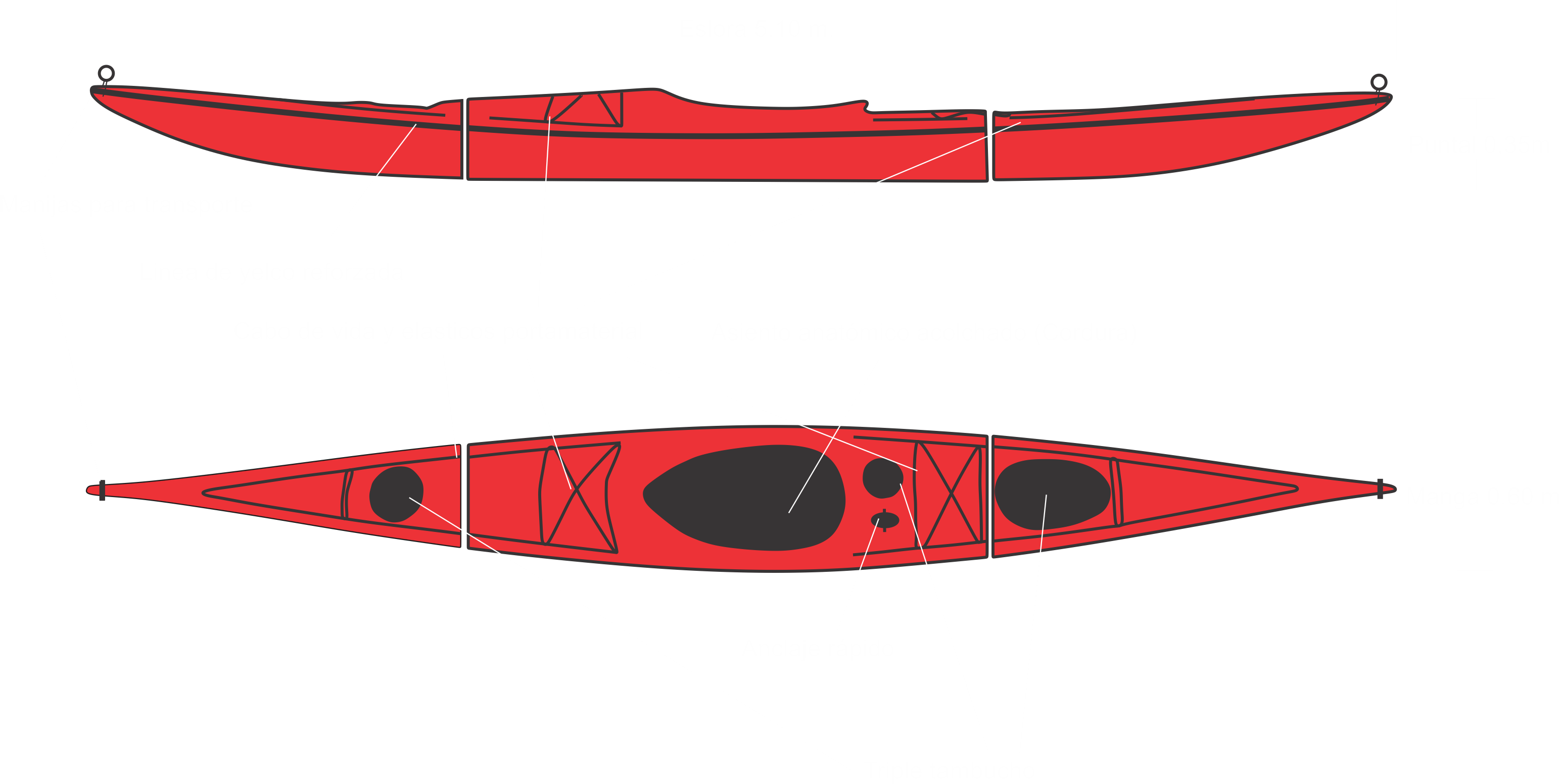 Un kayak apto para largas travesías como para paseos cortos, de gran maniobrabilidad y estabilidad.